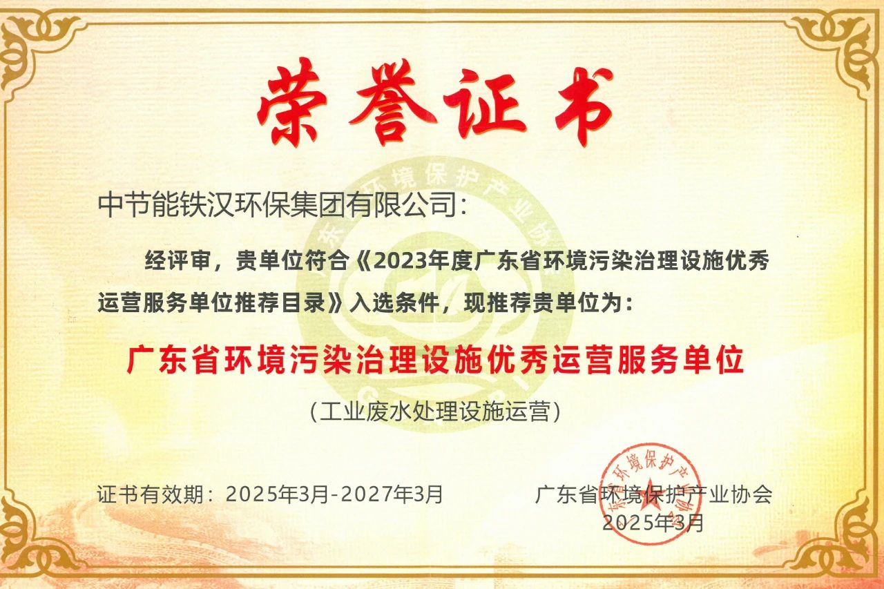 鐵漢環(huán)保獲評(píng)廣東省環(huán)境污染治理設(shè)施優(yōu)秀運(yùn)營服務(wù)單位